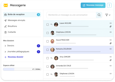 Conçue pour le quotidien des établissements, la messagerie d’Open ENT facilite les échanges entre enseignants, élèves et familles. Recherche d’un contact à partir du nom d’un élève, organisation claire des fils de discussion, alertes pertinentes, pièces jointes simplifiées : chaque fonctionnalité répond à un usage concret du terrain, au service d’une communication fluide, fiable et maîtrisée.